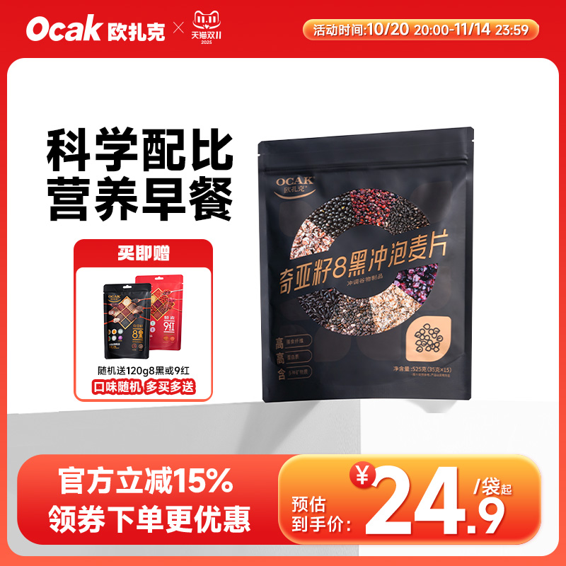 欧扎克奇亚籽8黑谷物混合燕麦片525g营养早餐代餐饱腹麦片