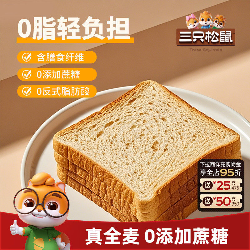 三只松鼠_全麦面包1kg 黑麦吐司低脂0蔗糖健康健身代餐饱腹轻食