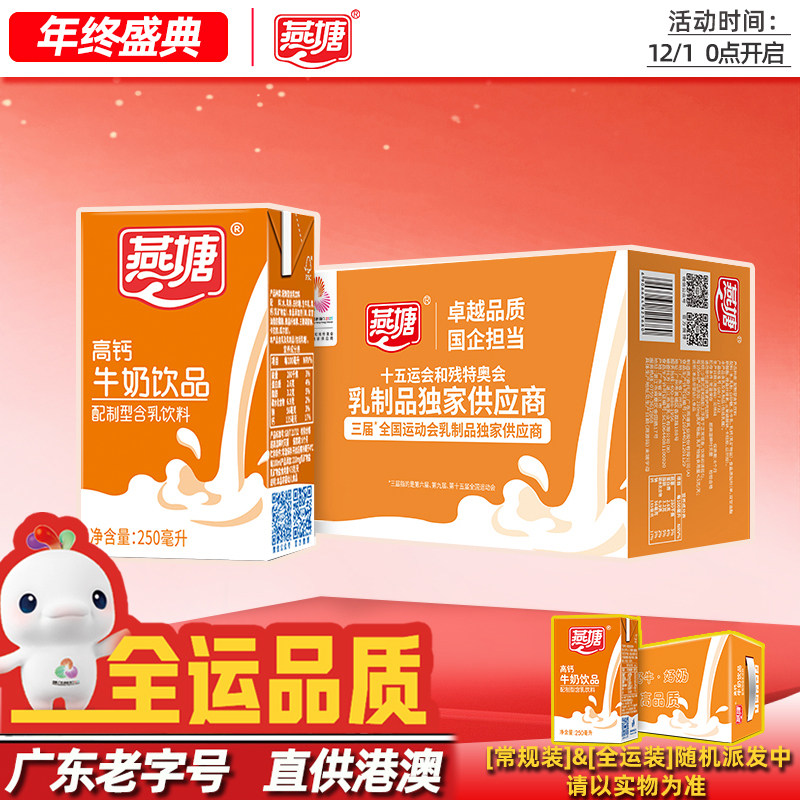 -> 燕塘高钙牛奶200/250ml整箱 儿童老人营养早餐奶每100ml含钙135mg