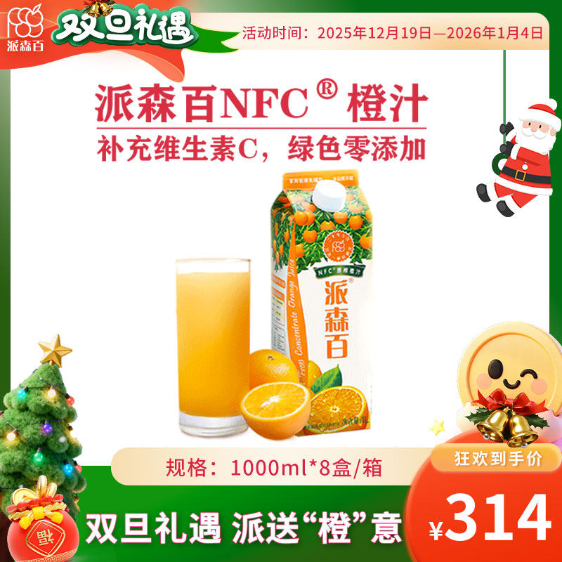 -> 派森百NFC橙汁1000mlx8盒装零添加天然维C绿色冷藏聚会纯果汁饮料