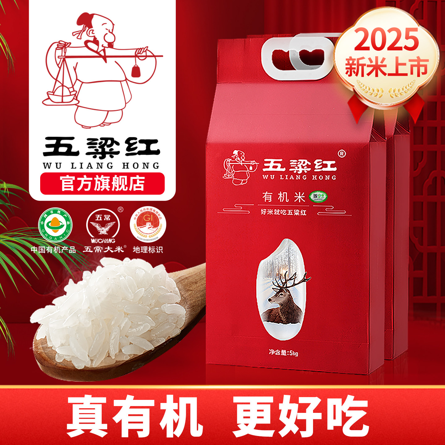 -> 2025新米五梁红正宗特等有机五常大米5kg*2原粮稻花香2号东北大米