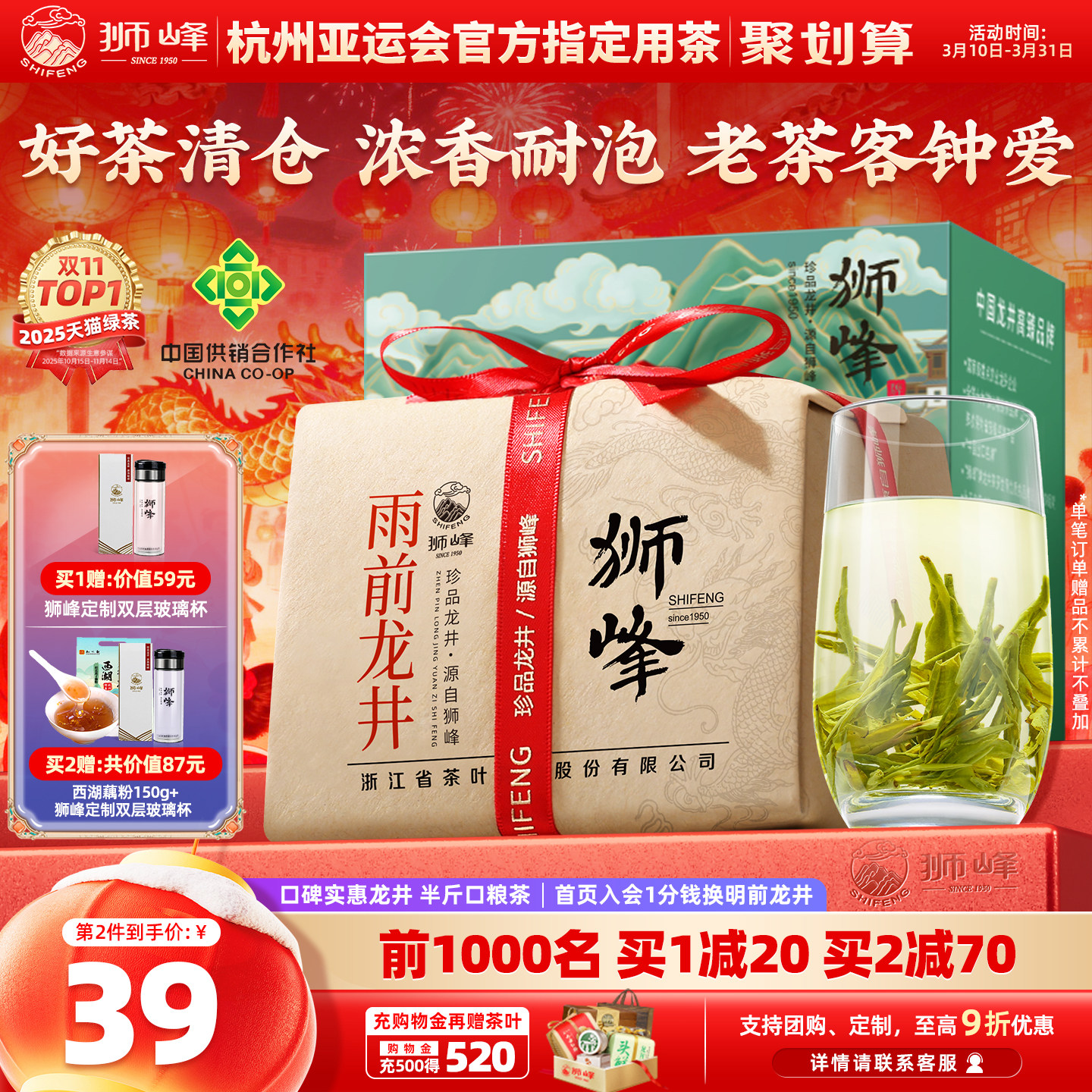 狮峰牌2025新茶绿茶雨前龙井茶叶250g春杭州官方旗舰店送西湖藕粉