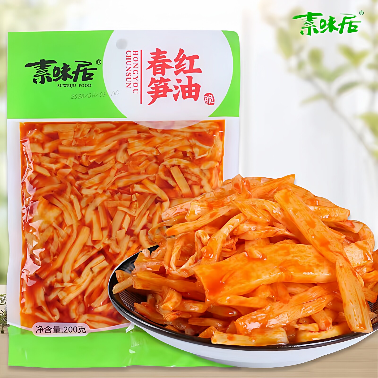 素味居红油春笋丝200g*10袋装红油竹笋即食香辣下饭菜泡菜3包