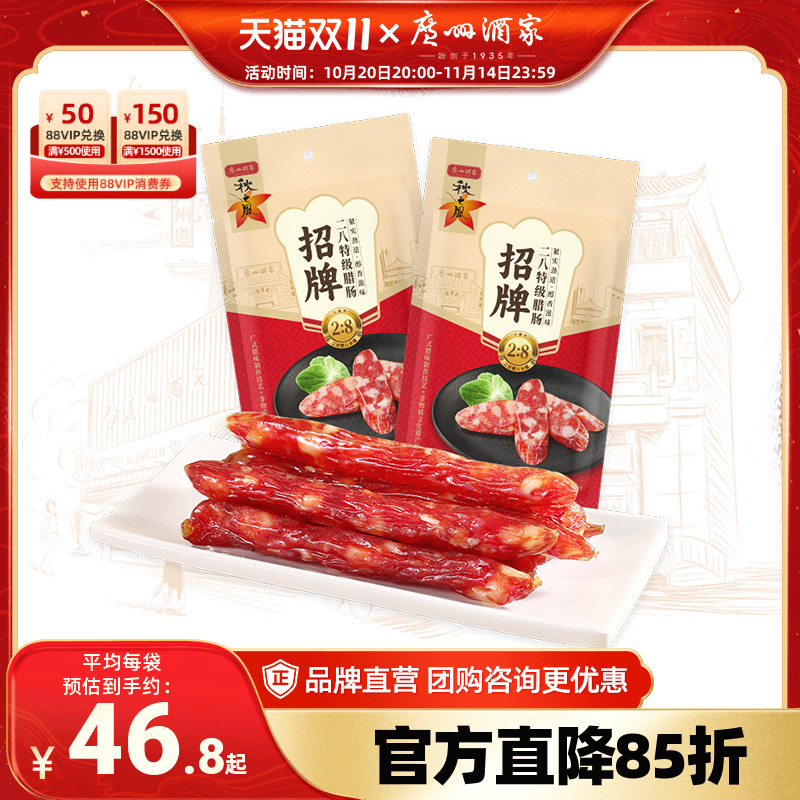 -> 广州酒家招牌二八腊肠秋之风广式腊味广味香肠广东特产囤货送礼