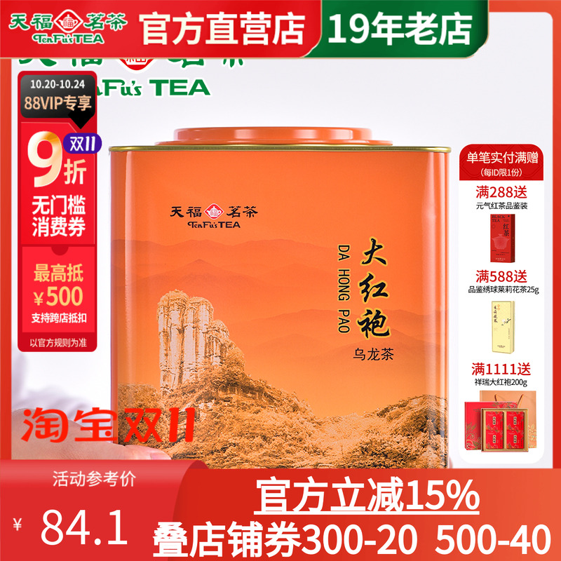 天福茗茶福建武夷山大红袍乌龙茶茶叶 家庭装大罐装桶装散茶500g