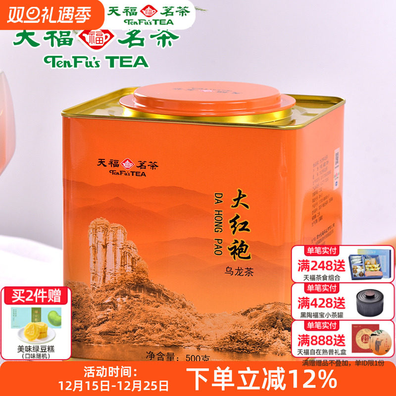 天福茗茶武夷山岩茶大红袍茶叶 福建乌龙茶红茶大罐装散茶500g
