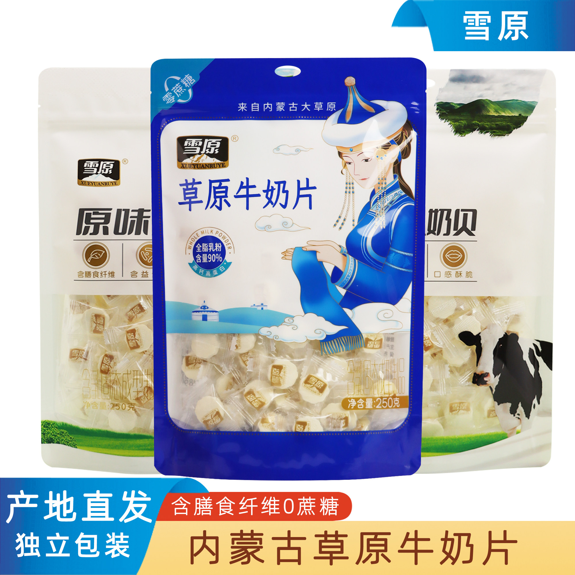 雪原草原牛奶片奶贝原味含牛初乳无蔗糖独立包装奶制品零食