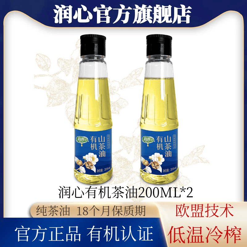 -> 【官方正品】江西润心有机山茶油200MLx2瓶低温压榨食用油