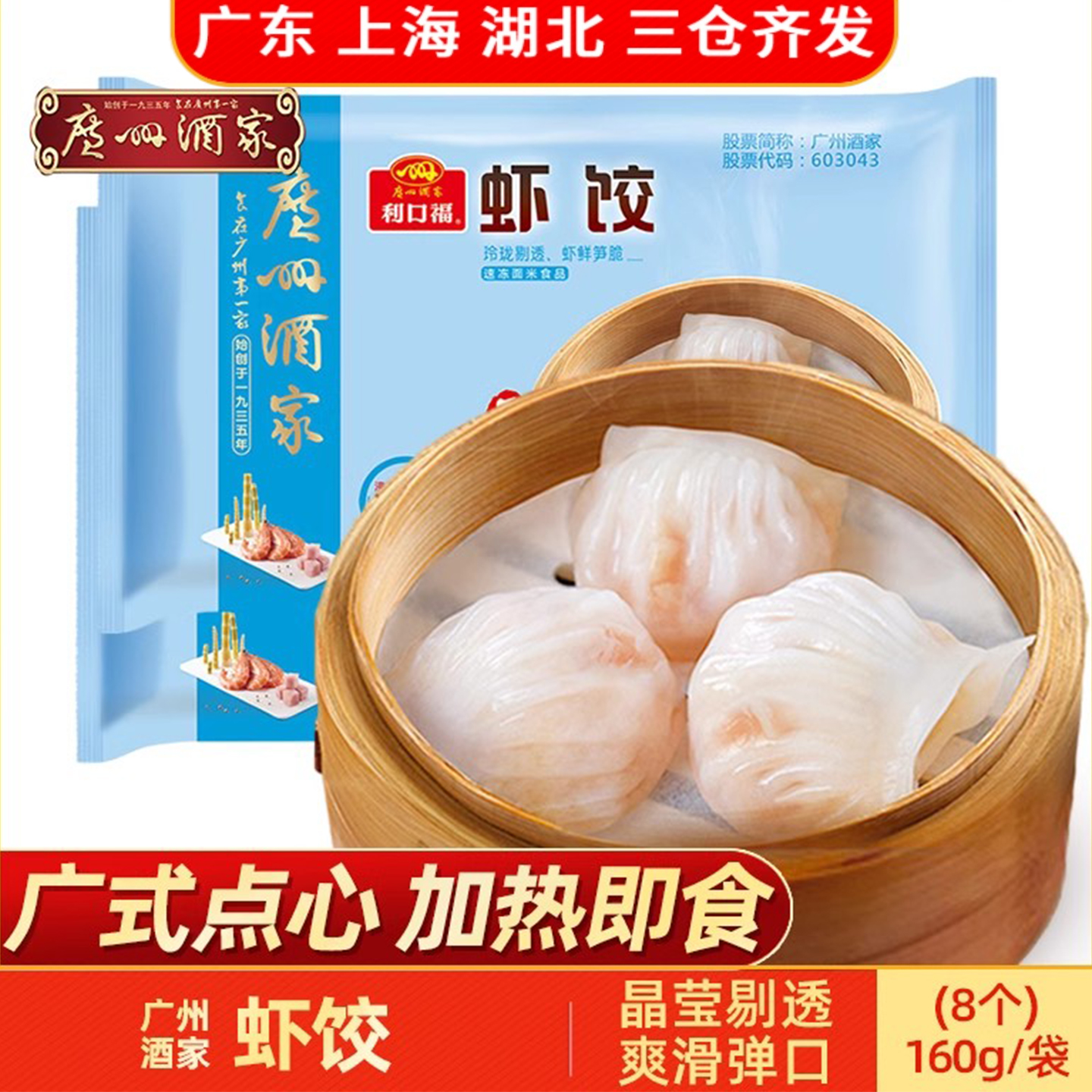 广州酒家利口福虾饺160g广式茶楼面点心方便速食早餐半成品蒸即食