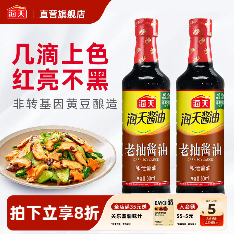 -> 海天老抽酱油500mlPET瓶装家庭厨房调味上色炒菜焖炖红烧