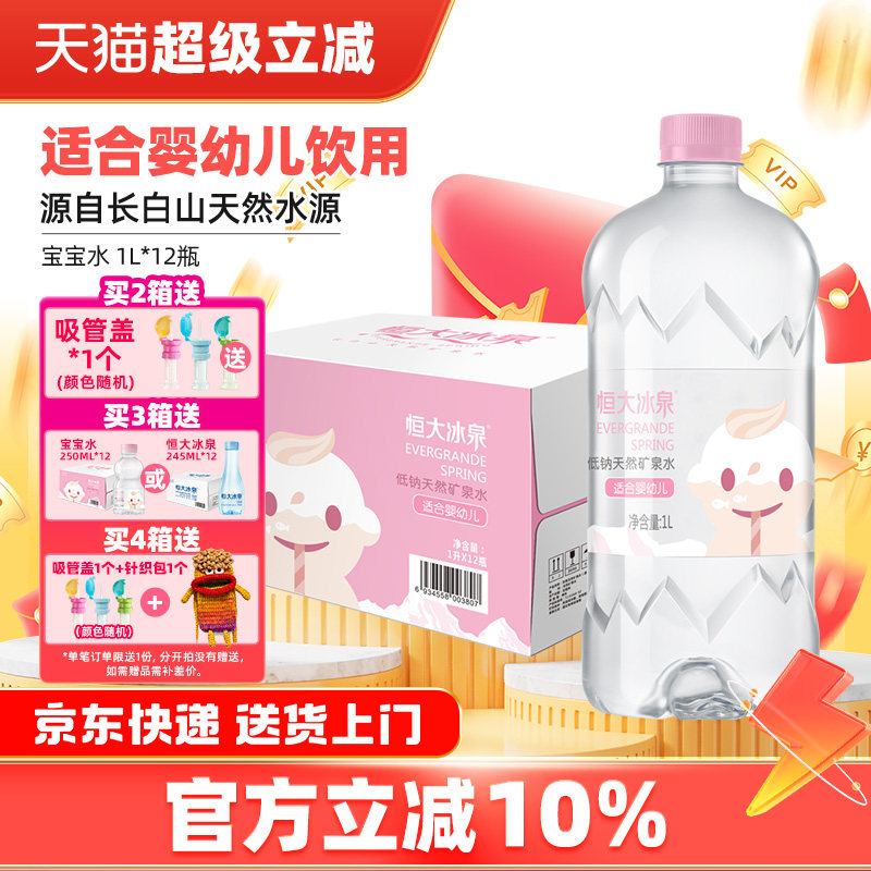-> 恒大冰泉宝宝水婴儿儿童泡奶长白山低钠天然矿泉水饮用水1L*12瓶