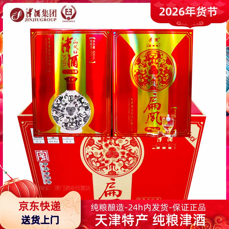 天津津酒纯粮食酒瓶装花津酒40度52度扁凤窖藏浓香型白酒整箱6瓶