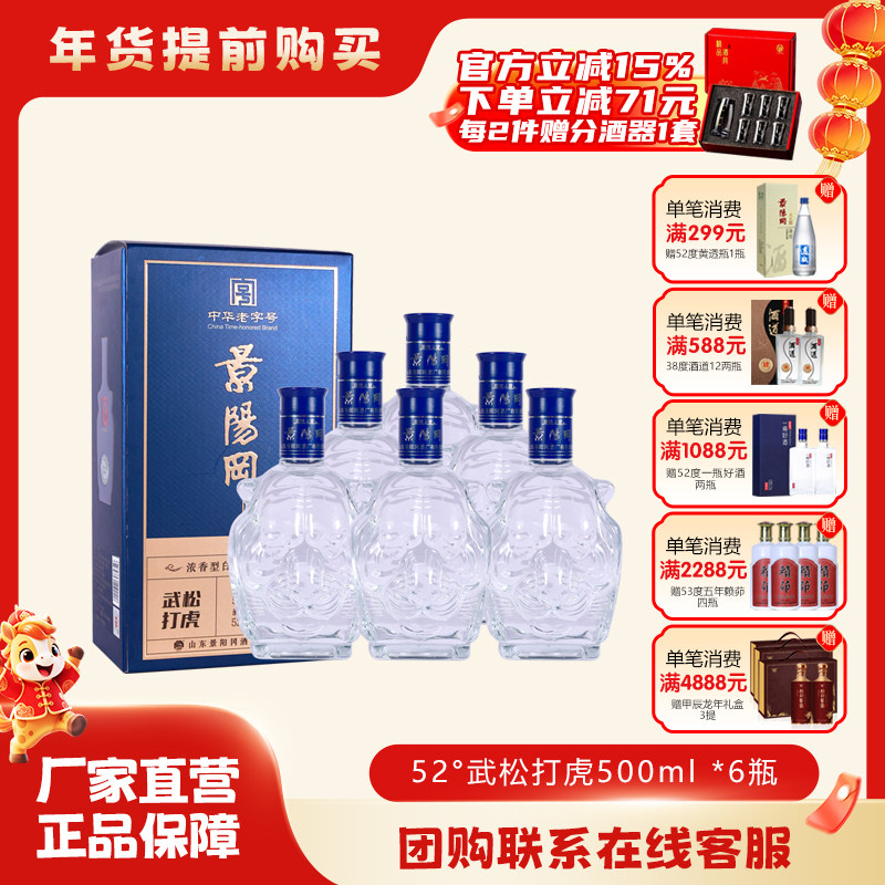 景阳冈酒青花瓷52度500ml*6整箱6瓶纯粮酒浓香型盒装聊城特产
