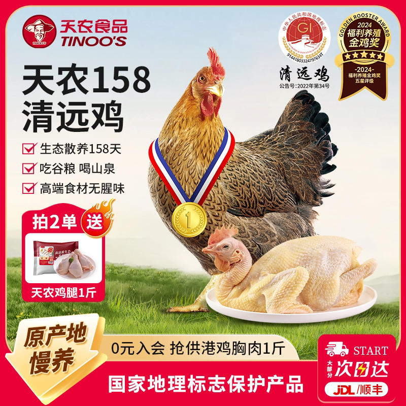 天农158正宗广东清远鸡旗舰店整只生鲜麻鸡供港品质农家散养土鸡