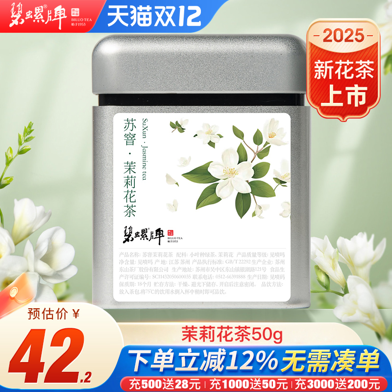 碧螺牌洞庭山碧螺春茶鲜叶烘青花茶四窨苏州东山茉莉花茶50g罐装