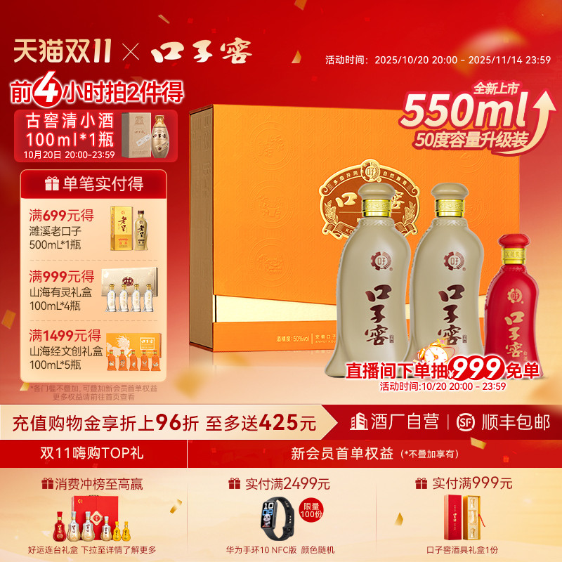 口子窖5年型礼盒50度550mL*2瓶 五年型安徽兼香型白酒 送礼送长辈