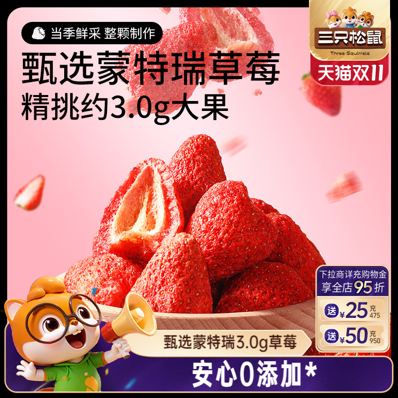 -> 三只松鼠_冻干草莓金枕榴莲水果干蜜饯零食解馋营养健康低脂脆块