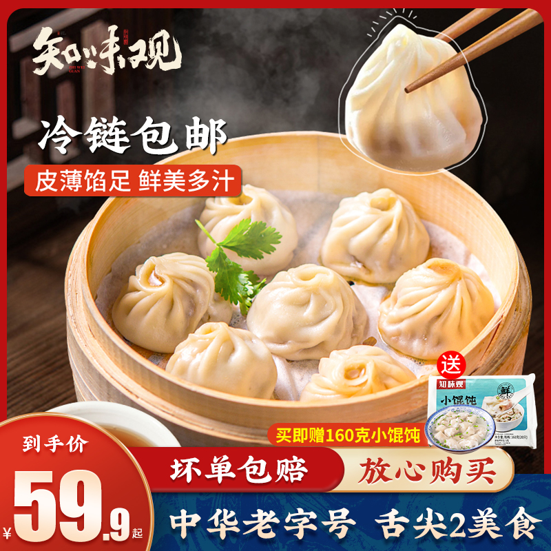 -> 知味观正宗杭州小笼包半成品特色早餐汤包子手工灌汤鲜肉小笼包
