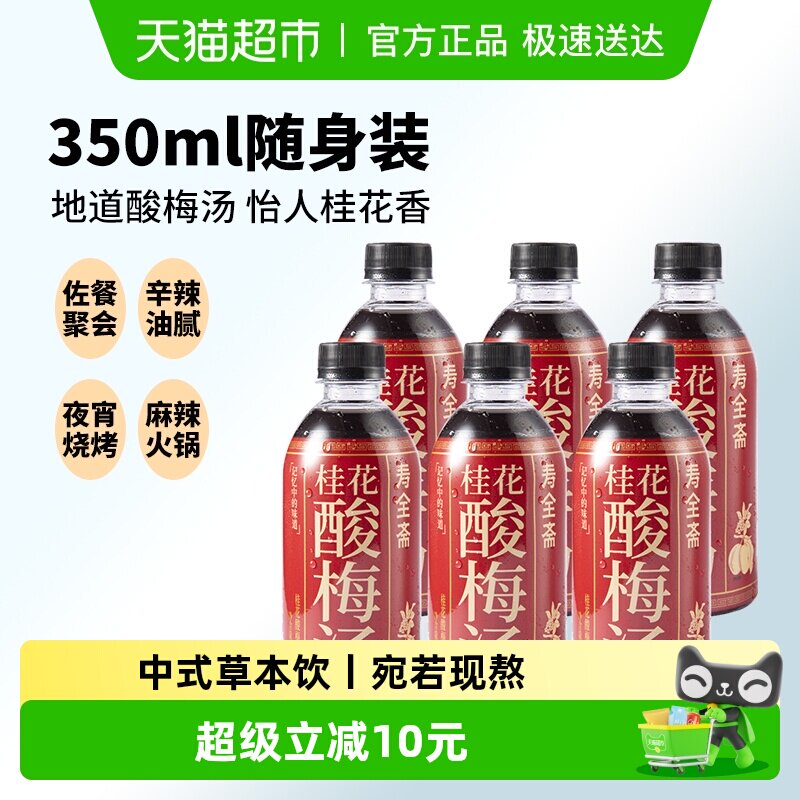 -> 寿全斋桂花酸梅汤饮料350ml*6瓶乌梅干果汁清爽解腻解暑