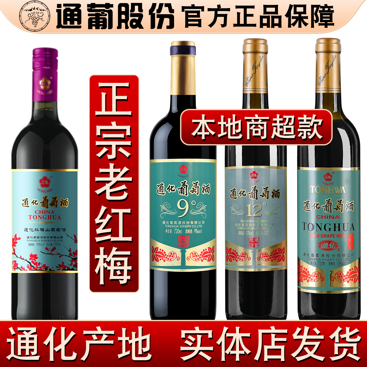吉林通化葡萄酒9度12度老红梅15度山葡萄酒国产甜红酒旗舰通化店
