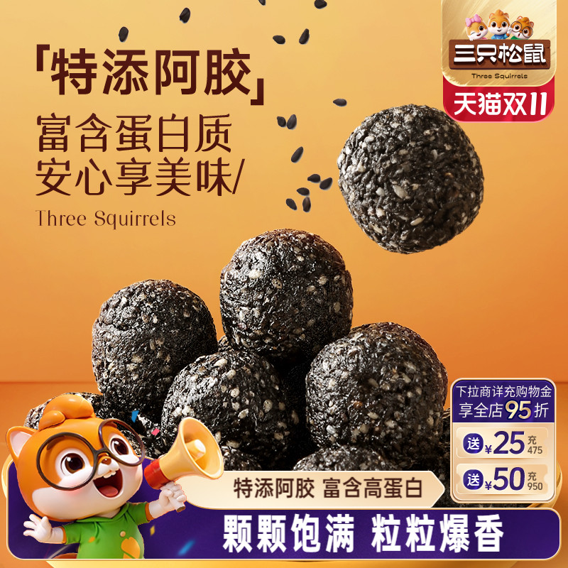 -> 三只松鼠高蛋白阿胶黑芝麻丸高蛋白红枣核桃送长辈礼零食滋补礼盒