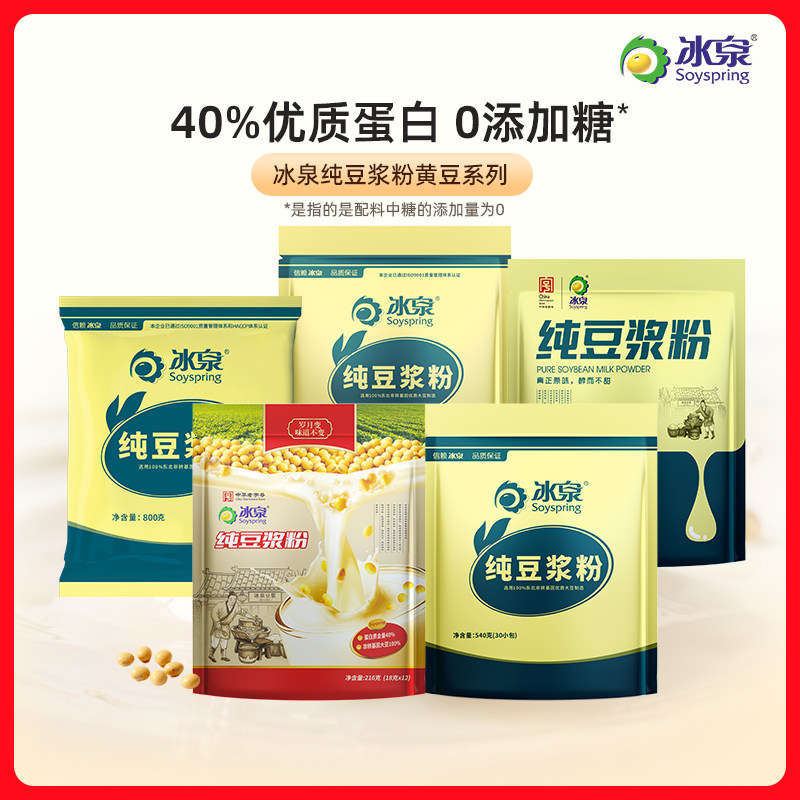 -> 【百亿补贴】冰泉纯豆浆粉540g原味高蛋白速溶健身早餐无添加糖