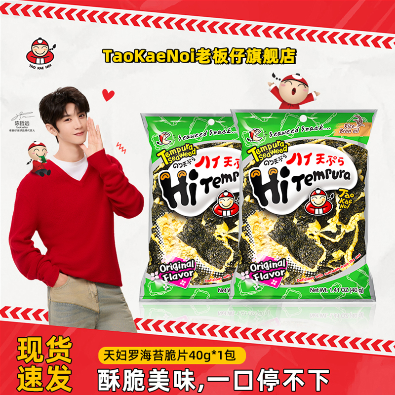 陈哲远代言TaoKaeNoi老板仔旗舰店泰国进口休闲日式天妇罗海苔40G