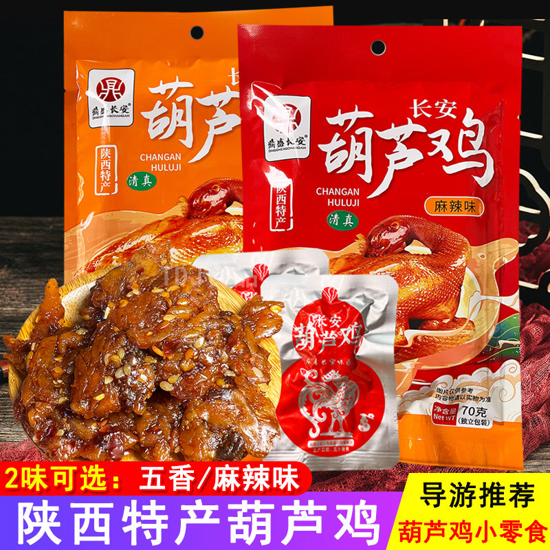 陕西特产长安葫芦鸡小包装70g 西安特产葫芦鸡五香麻辣味小零食品