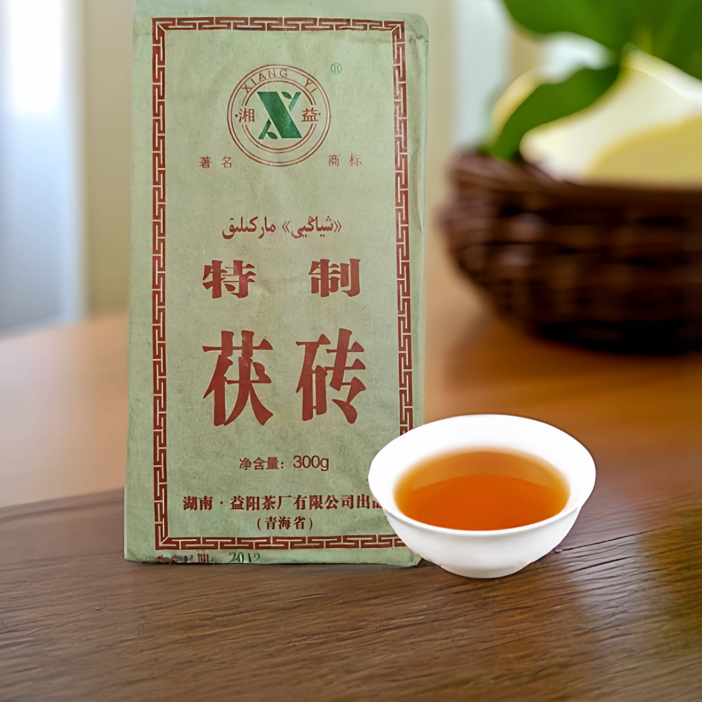 原装湘益益阳茶厂2014年300克金花茯砖茯茶正宗湖南安化黑茶叶茶