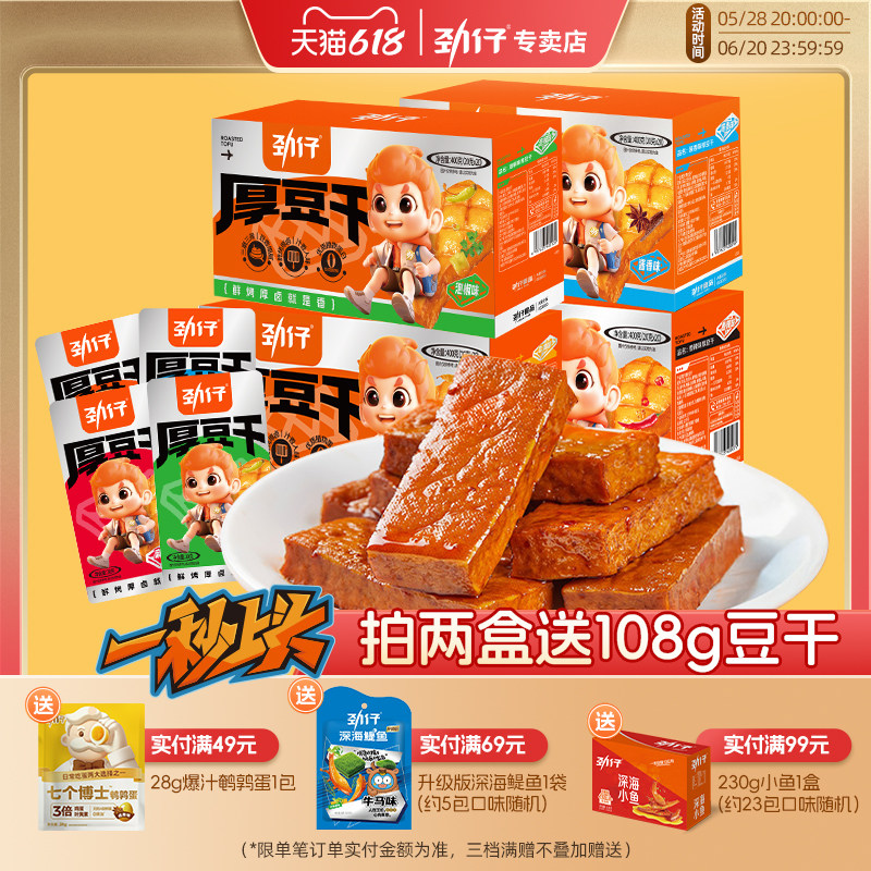 -> 劲仔厚豆干豆腐干零食小包装平江酱干办公室零食湖南特产小吃解馋