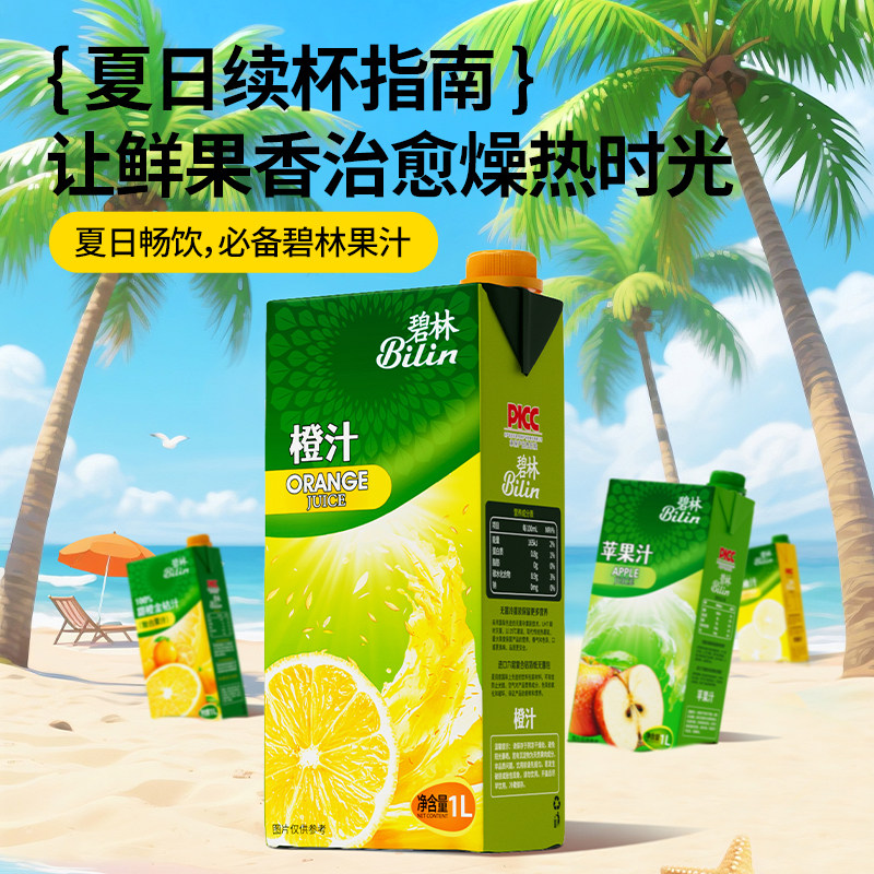 -> 稼乐碧林果汁1L*2盒橙汁苹果汁金桔汁西柚汁健康低脂浓缩果汁饮料