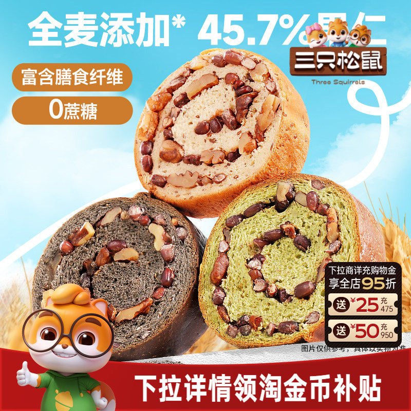 -> 三只松鼠坚果车轮全麦面包量贩2斤果仁健康零食早餐粗粮整箱吐司
