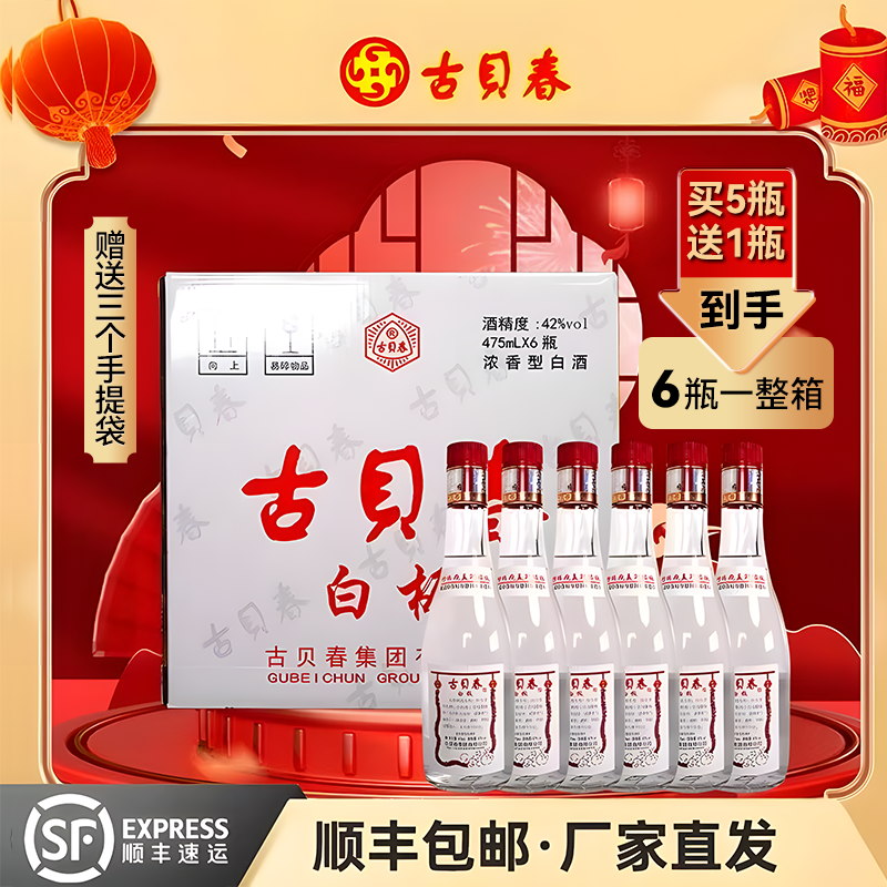 古贝春白板浓香型42度固态法商务高端纯粮白酒整箱475ml*5瓶赠1瓶