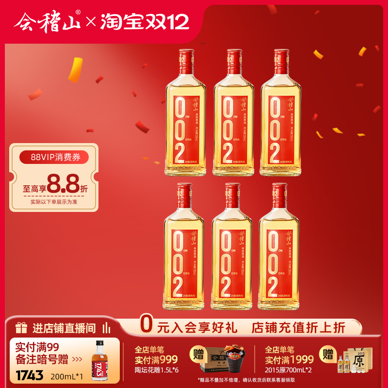 -> 会稽山官方 绍兴黄酒002干型黄酒500ml*6瓶装0添加焦糖色高度冬酿