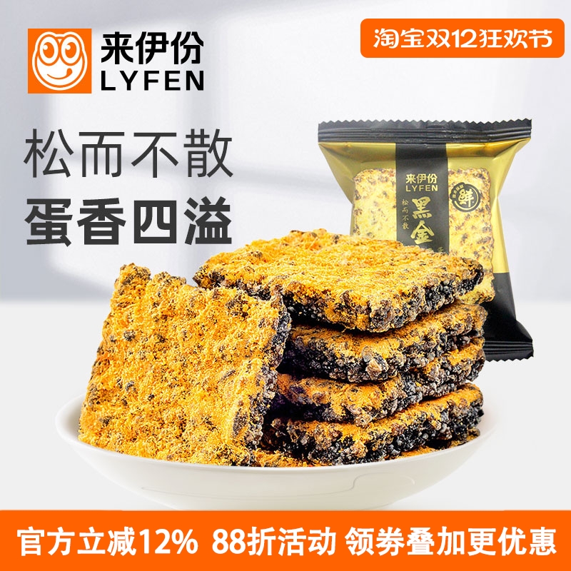 来伊份黑金锅巴500g咸蛋黄味膨化食品乌饭糯米休闲零食小吃小包装