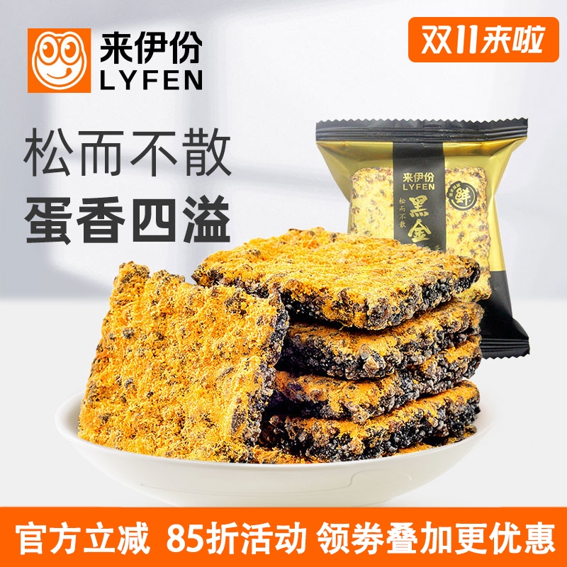 -> 来伊份黑金锅巴500g咸蛋黄味膨化食品乌饭糯米休闲零食小吃小包装