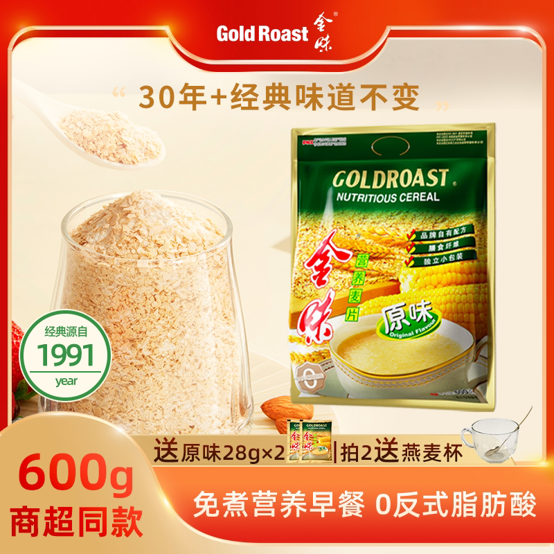 -> 金味麦片原味冲饮速溶懒人即食免煮燕麦代餐饱腹营养早餐袋装600g