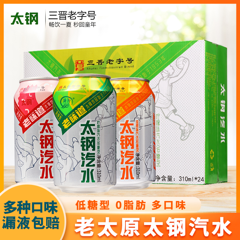 太钢汽水310ml易拉罐碳酸饮料果味汽水荔枝柠檬橙子味太原老味道