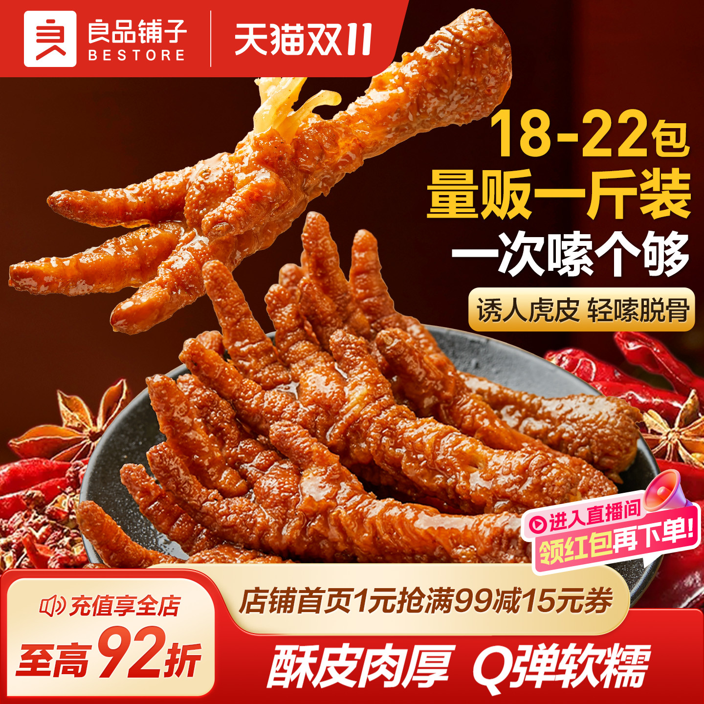 良品铺子虎皮凤爪500g卤香味鸡爪子独立小包装休闲解馋即食小零食