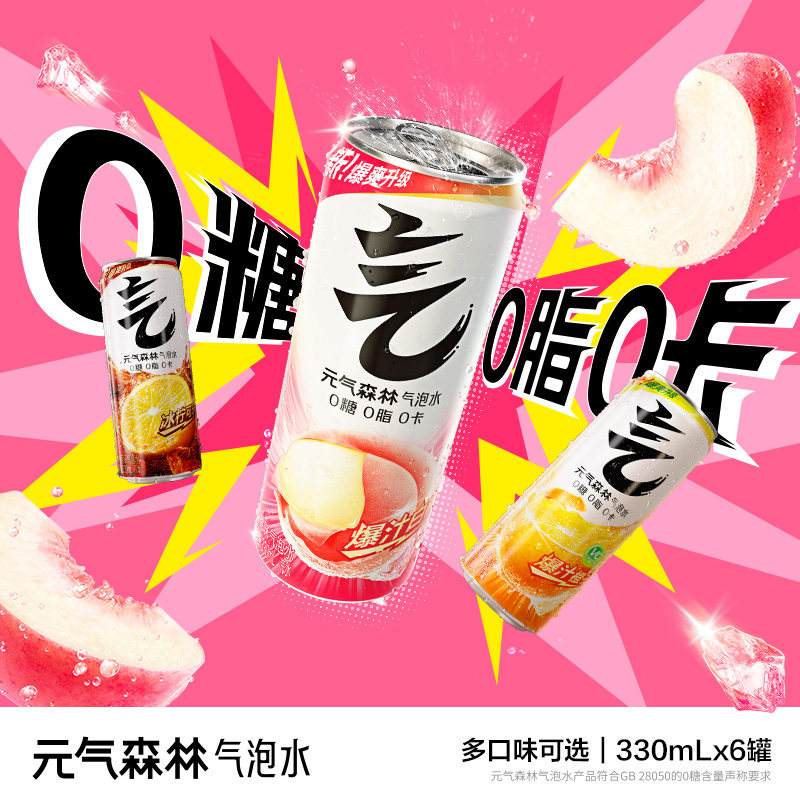 -> 元气森林多口味无糖气泡水330mL装饮料多规格可选xs
