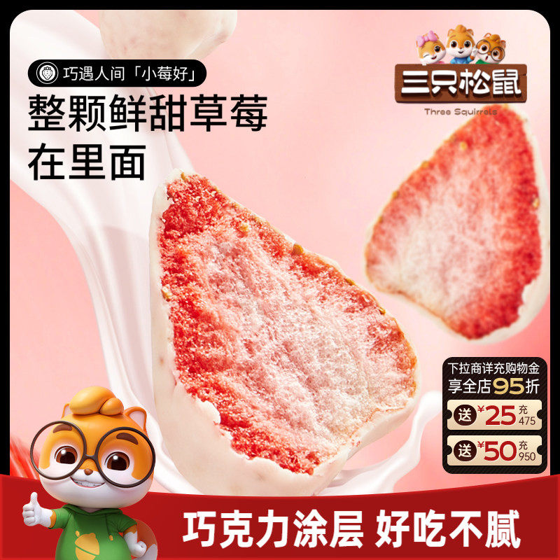 -> 【三只松鼠_巧克力冻干水果干】草莓干芒果干榴莲干网红零食涂层