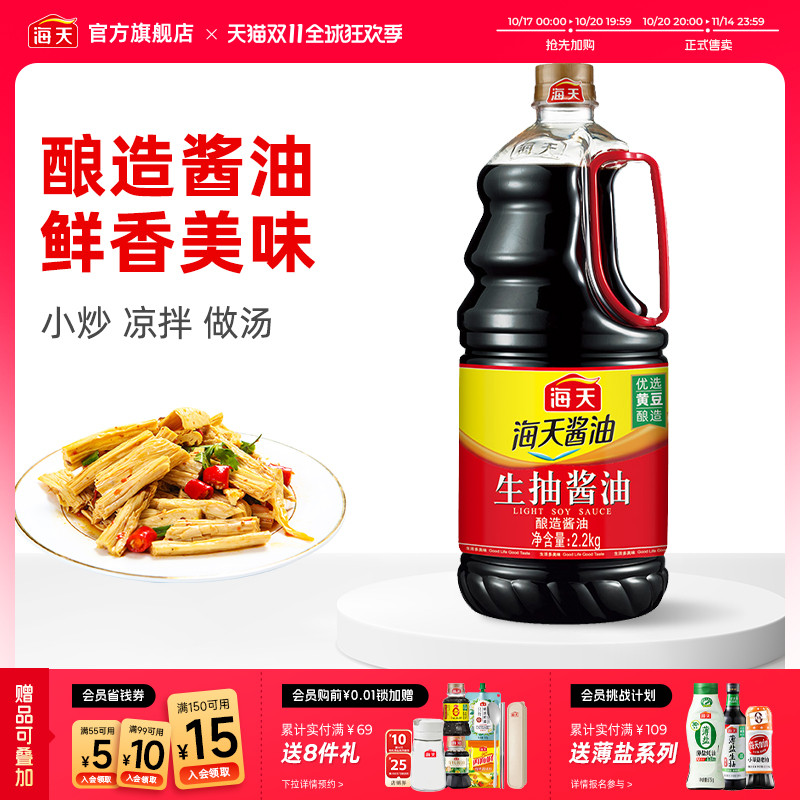 -> 海天生抽酱油2.2kg酿造酱油炒菜凉拌提鲜凉拌调味家用厨房
