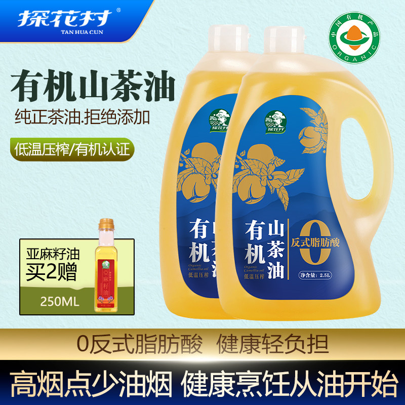 -> 探花村0反式有机山茶油5L装纯正低温压榨茶籽油食用油官方旗舰店