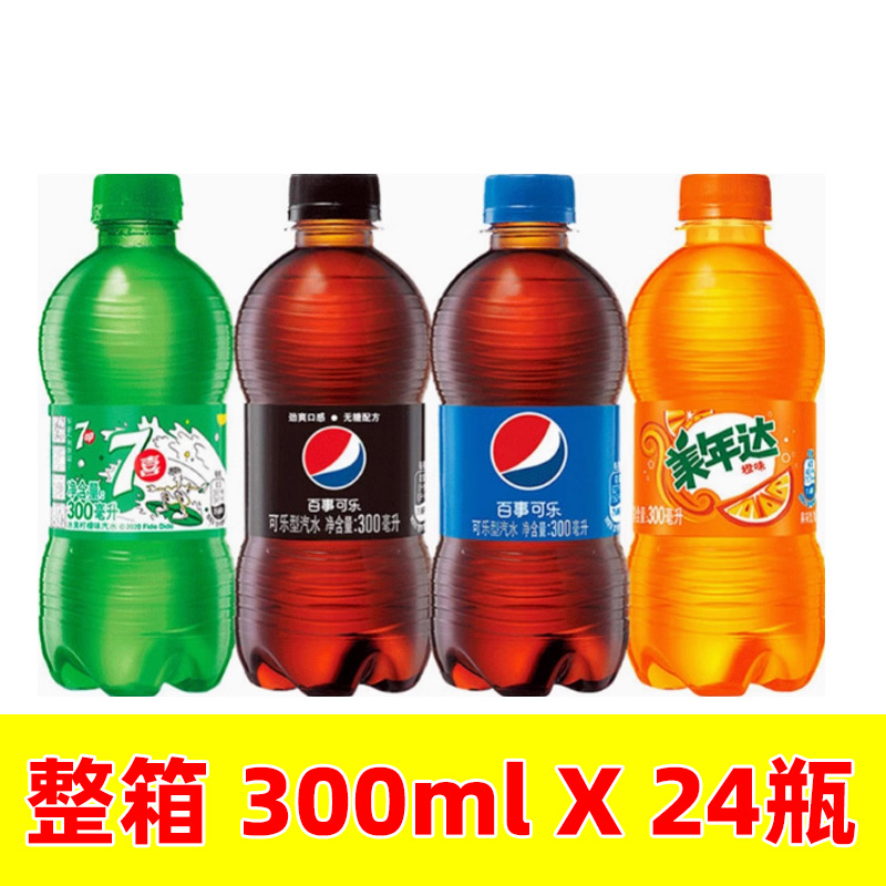 -> 百事可乐300ml24瓶美年达7七喜迷你型小瓶无糖汽水碳酸饮料整箱