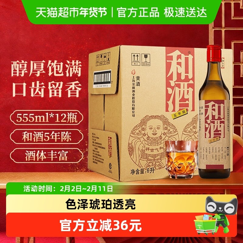和酒5年陈整箱装黄酒量贩装