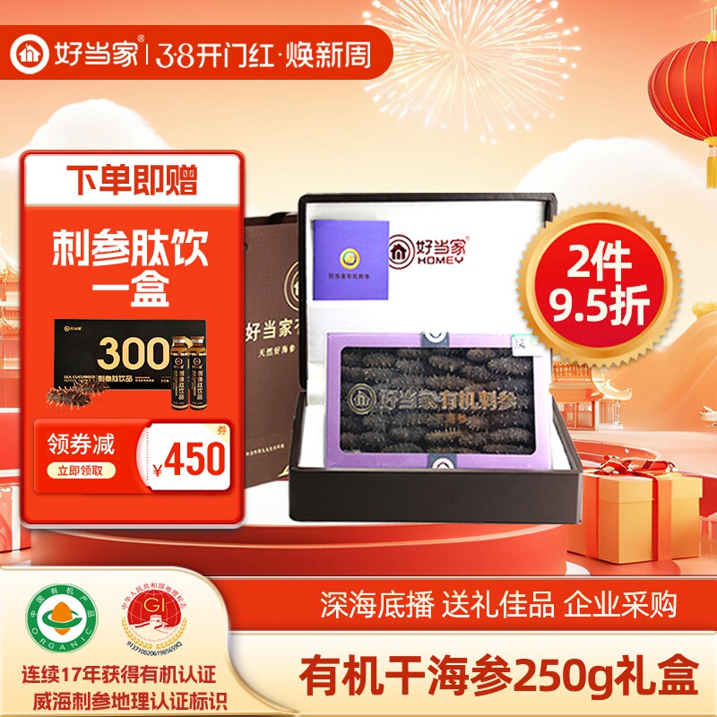 好当家干海参干货250g威海刺参年货礼盒礼品旗舰店深海底播非即食