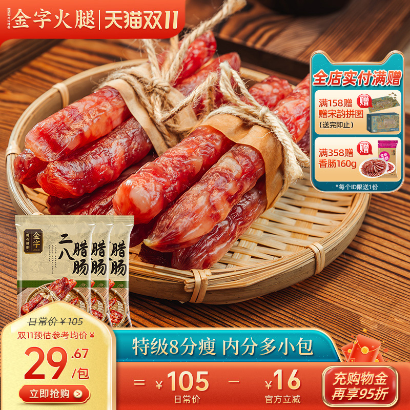 -> 金字特级二八腊肠250gx3包广式腊肠香肠正宗广味