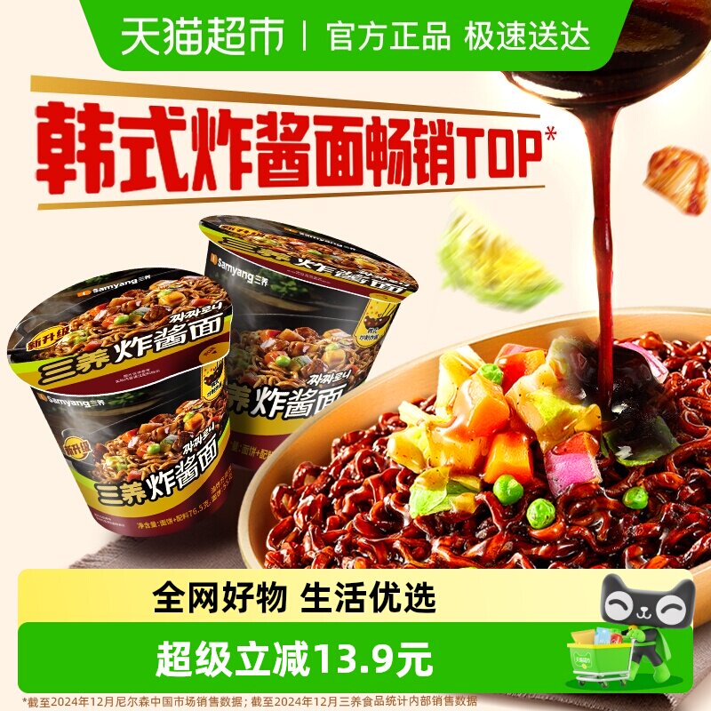 【下拉享优惠】韩国Samyang三养炸酱面76.5gx2杯面夜宵方便面