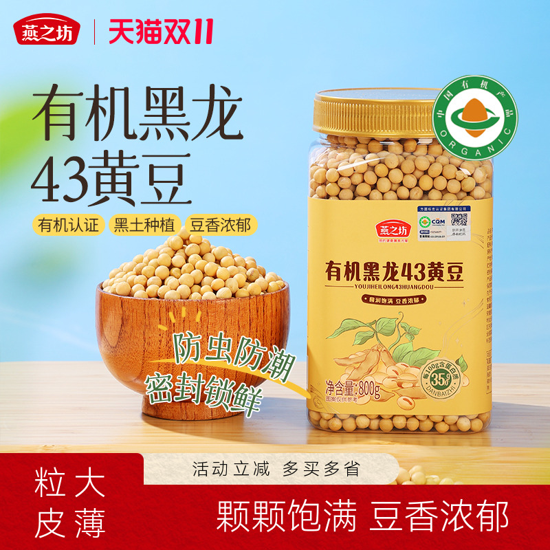 -> 燕之坊有机黑龙43黄豆800g黄豆打豆浆豆子东北农家新黄豆粒