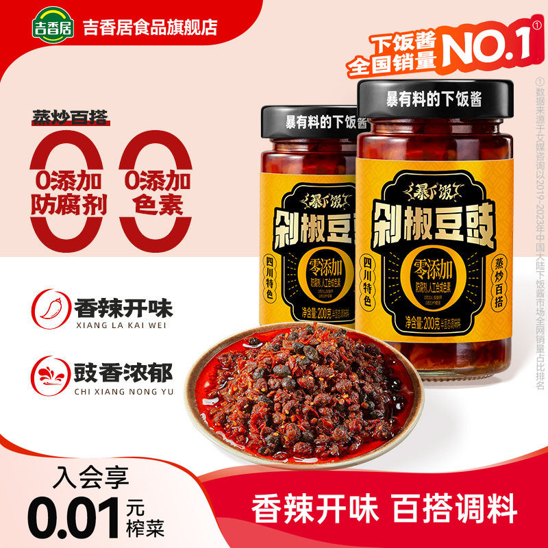 -> 吉香居暴下饭剁椒豆豉200g四川麻辣风味豆豉辣椒酱下饭菜拌饭拌面